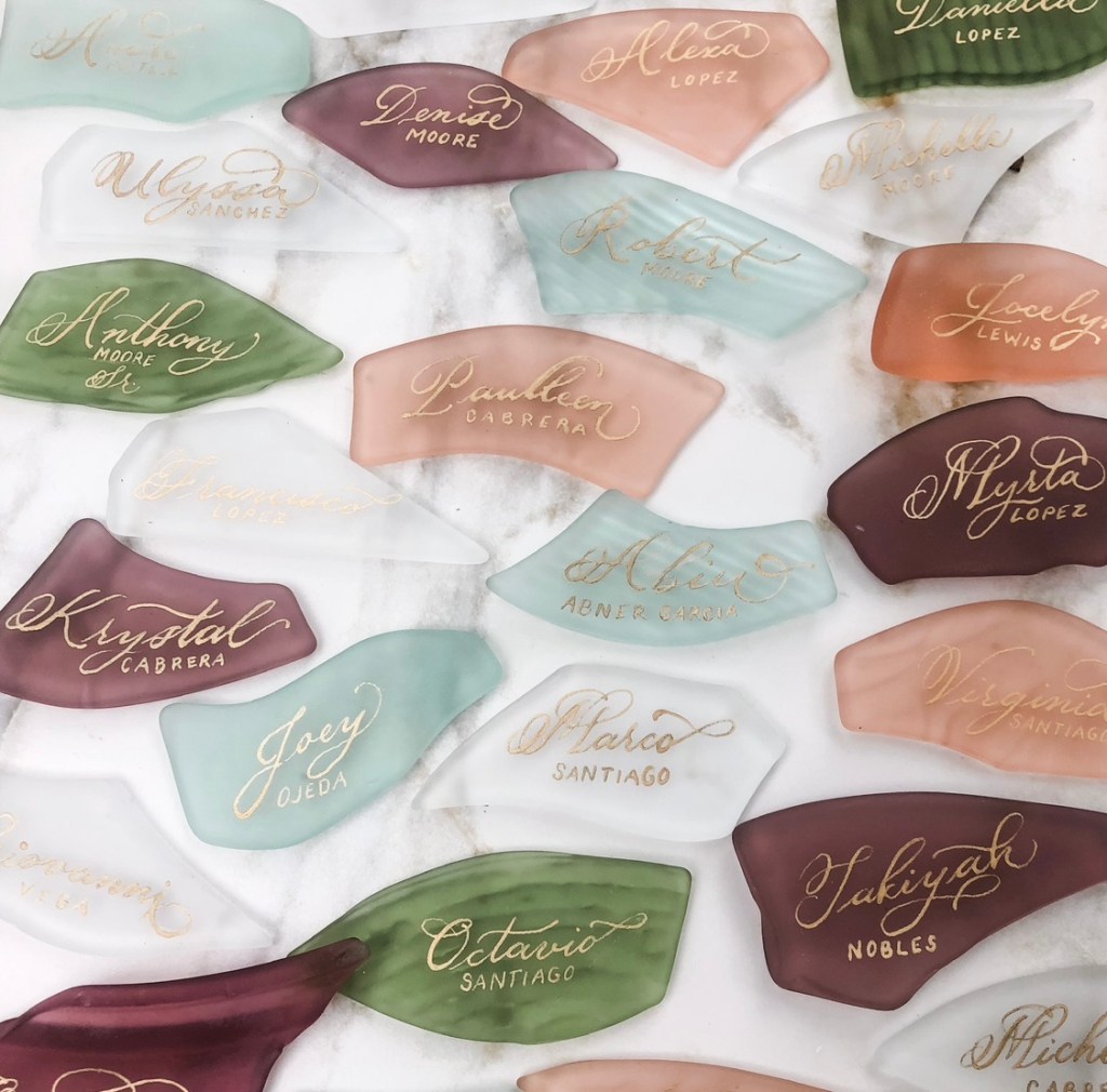 If you are hosting a holiday dinner or gifting something to a loved one who shines as a hostess, custom place cards are a beautiful touch. Sea glass, acrylic, and other specialty materials help create a personalized table setting that guests will remember. These also double as keepsakes for weddings, showers, and future holidays.